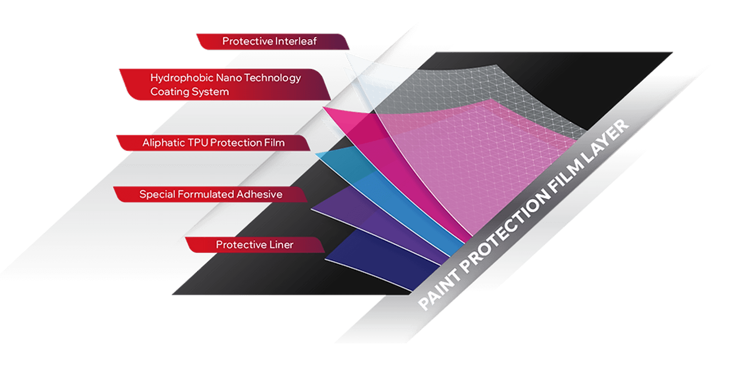 M-PRO PRO MAX PPF is a virtually transparent layer of urethane film with ground-breaking innovation in the paint protection film industry. Scientifically formulated using advanced nano-coating developed over years of R&D. M-PRO PPF fuses the hydrophobicity technology of ceramic coating with premium, self-healing Aliphatic Thermoplastic Polyurethane (TPU) paint protection film. As a result, a significantly exquisite anti-stain, anti-scratch and anti-abrasion PPF is formed.